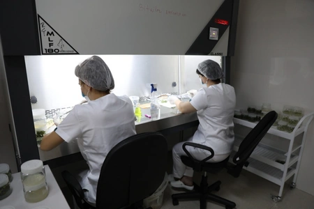 Laboratoriyanın müdiri Sevil Süleymanova isə deyir ki, bitkilərin mikroklonal üsulla çoxaldılması 4 əsas mərhələdən ibarətdir: “I mərhələdə sort mənsubiyyəti təsdiq olunan bitkilərdən eksplantlar alınır. Sonra həmin materiallar laboratoriyada sterilizə edilir. Mikroklonal çoxalmanın birinci mərhələsi laminar bokslarda həyata keçirilir. Tam sterilizasiya olunan tumurcuqlar xüsusi şüşə qablarda iqlim otağına yerləşdirilir. 21 gündən sonra bitki hissəciklərində ilk cücərtilər nəzərə çarpmağa başlayır. Həmin cücərtilər çoxaltma qida mühitlərinə köçürülür. Təkrar-təkrar çoxaltma nəticəsində lazım olan sayda bitki əldə edilir. Həmin bitkilər isə köklənmə mərhələsinə qədəm qoyur. Köklənmə mərhələsində bitkilər fərqli qida mühitində bəslənilir. Bu mühitlərdə hər bitkinin özünəuyğun mikroelementləri mövcuddur. Xüsusi şəraitdə və temperaturda saxlanılan cücərtilər 20 gündən sonra köklənməyə başlayır. Kökləri 1,5-2 santimetrə çatdıqdan sonra bitkilər üçüncü - adaptasiya mərhələsinə hazır sayılır. Əldə olunan bir tumurcuqdan biotexnologiya laboratoriyasında 105-107 yeni bitki əldə etmək mümkündür. Adaptasiya dövrünü başa vuran sağlam və virusa davamlı bitkilər sahələrə köçürülür”.
