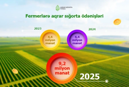 Bundan başqa, 2025-ci ildə Azərbaycan müxtəlif hadisələr səbəbindən zərərlə üzləşən fermer və təsərrüfatlara ümumilikdə 9,2 milyon manat sığorta ödənişi edilib. Bu 2024-cü ilin ödənişləri ilə müqayisədə 44 %, 2023-cü illə müqayisədə isə 2,1 dəfə artıqdır.