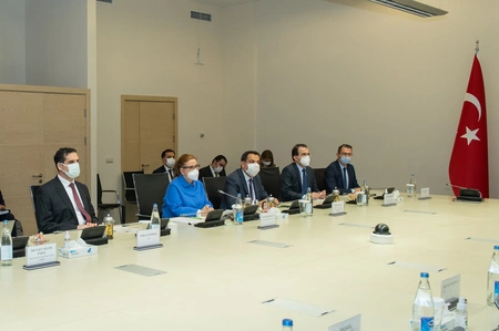 Türkiyənin ticarət naziri Ruhsar Pekcanın rəhbərlik etdiyi nümayəndə heyəti ilə Azərbaycan-Türkiyə ticari-iqtisadi əlaqələri müzakirə edilir.