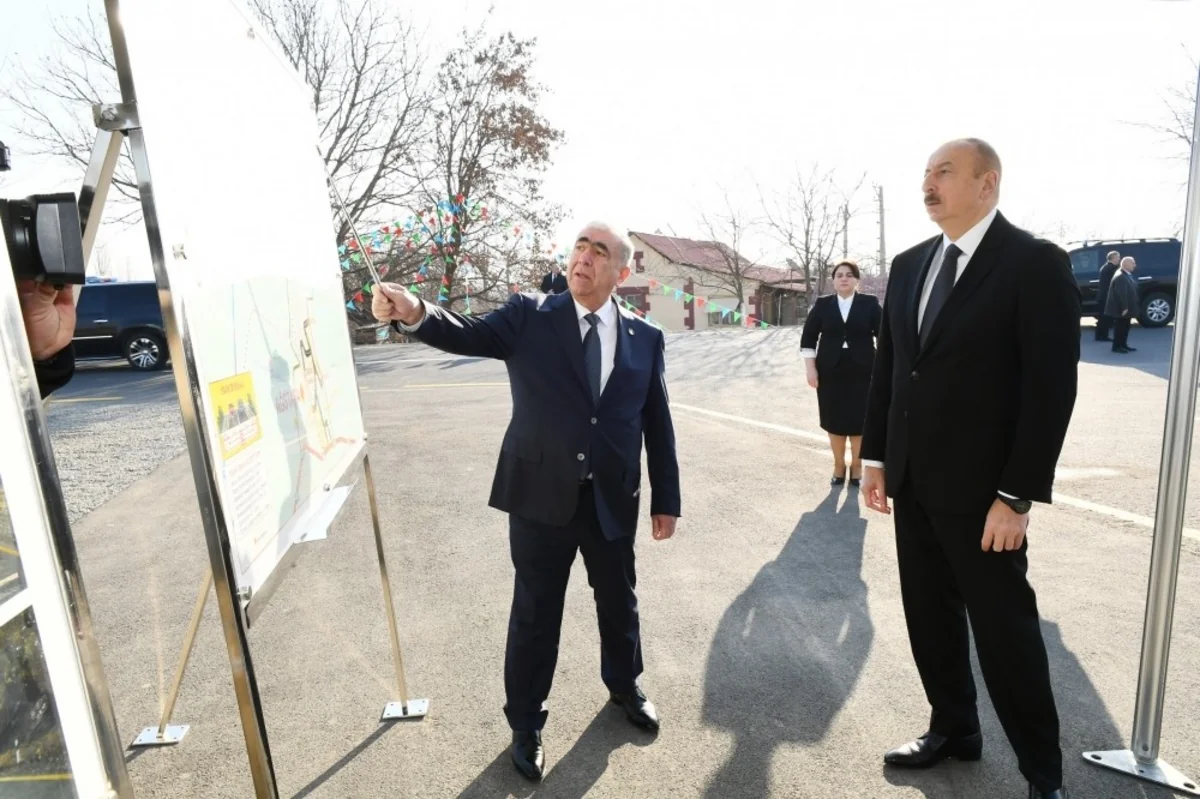 Prezident İlham Əliyev yolun rəmzi açılışını bildirən lenti kəsib.