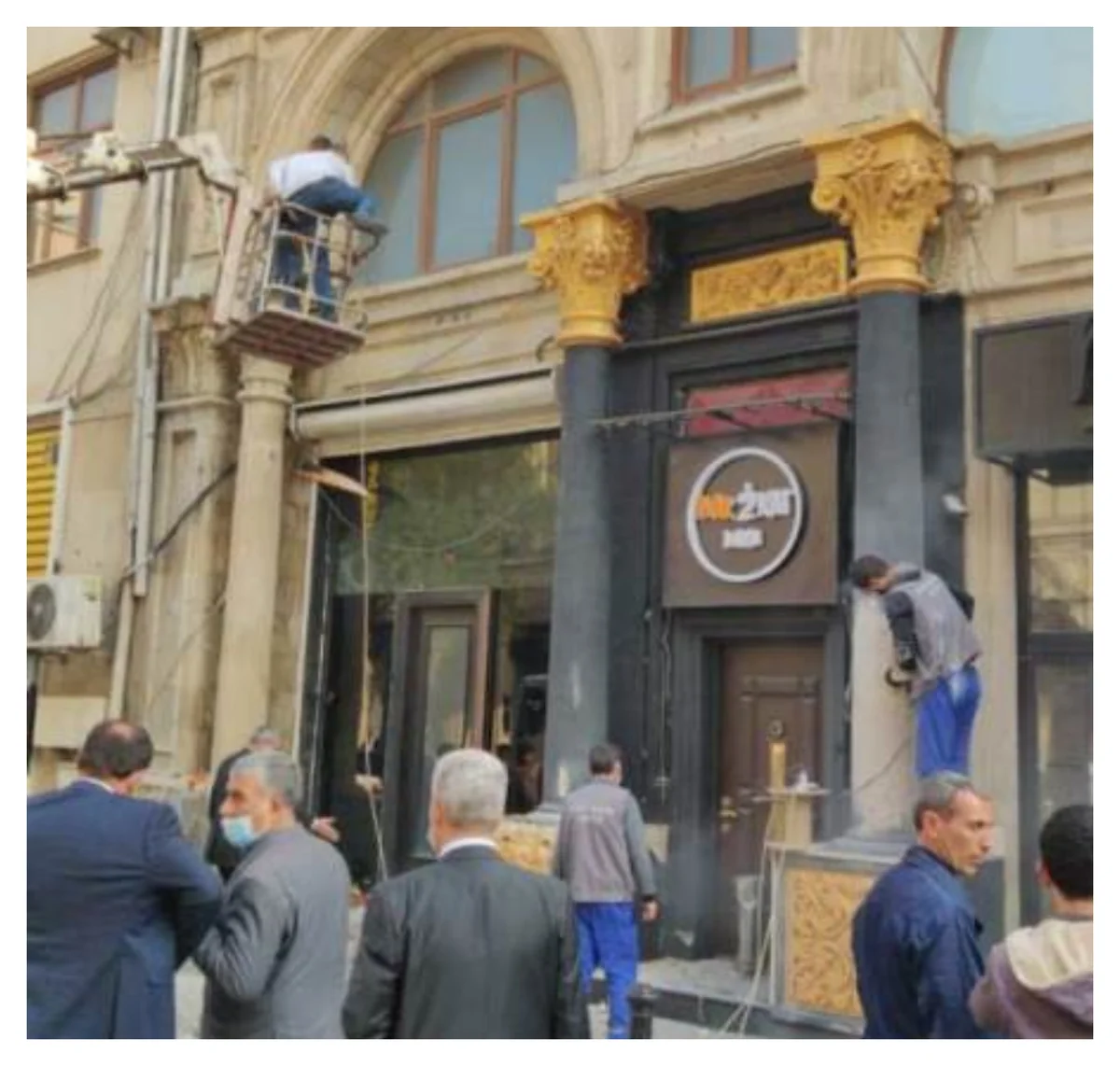 "Bakı şəhəri Akademik Zərifə Əliyeva küçəsi ilə Məmməd Əmin Rəsulzadə küçələrinin kəsişməsində yerləşən tarixi binanın fasadının bir hissəsinin qara və qızılı rəngə boyanması haqqında sosial şəbəkədə yayımlanan məlumatla bağlı bildiririk ki, paytaxtın müvafiq xidmətlərinin və Baş Polis İdarəsinin əməkdaşları tərəfindən dərhal həmin ərazinin əvvəlki vəziyyətə gətirilməsi ilə bağlı təxirəsalınmaz tədbirlər həyata keçirilib, binadakı obyektin icarədarı və sahibkar cəzalandırılıb".