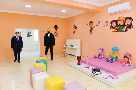 - Bu gün Bakının Ramana qəsəbəsində şəhid ailələri və müharibə əlilləri üçün yeni yaşayış kompleksi istifadəyə verilir. Bu münasibətlə sizi təbrik edirəm. Burada otuz bina inşa edilibdir. Binaların hamısı müasir səviyyədə, yüksək keyfiyyətlə tikilib, mənzillər də çox genişdir, işıqlıdır. Uşaq bağçası, 1200 şagird yerlik məktəb inşa edilir. Yəni, yaşayış üçün bütün imkanlar var və bu münasibətlə sizi ürəkdən təbrik edirəm. Müharibədən cəmi üç ay yarım keçib, ancaq şəhid ailələri və müharibə əlilləri üçün artıq belə gözəl yaşayış kompleksi, şəhərcik inşa olunub, təqdim edilib.