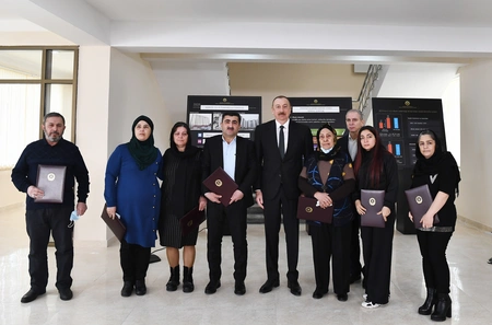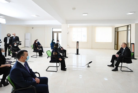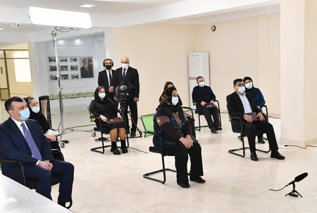 Komplekslə tanışlıqdan sonra Prezident İlham Əliyev şəhid ailələrinin üzvləri və müharibə əlilləri ilə görüşüb.