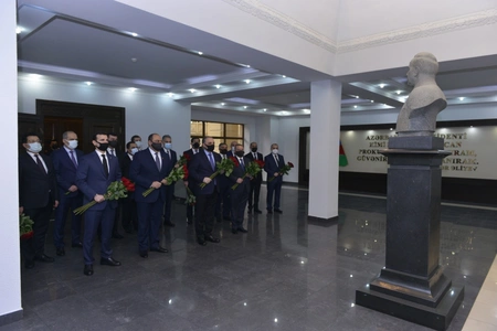 "Report" Baş Prokurorluğun saytına istinadən xəbər verir ki, tədbir iştirakçıları əvvəlcə ulu öndər Heydər Əliyevin Baş prokurorluğun inzibati binasındakı büstü önünə əklil və gül dəstələri qoymuş, unudulmaz xatirəsini ehtiramla yad etmişlər.