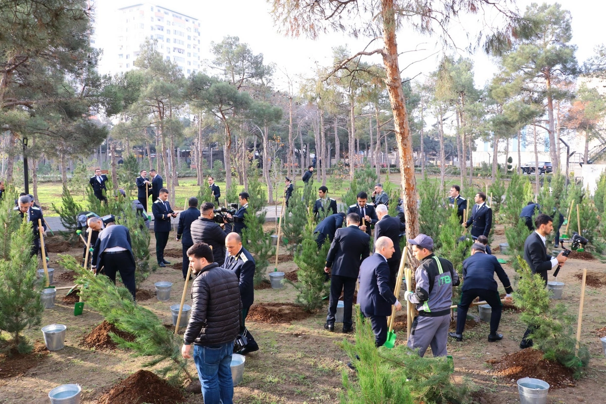 Tədbir iştirakçıları yeni inzibati binanın yanında yerləşən parkda ağaclar əkiblər.
