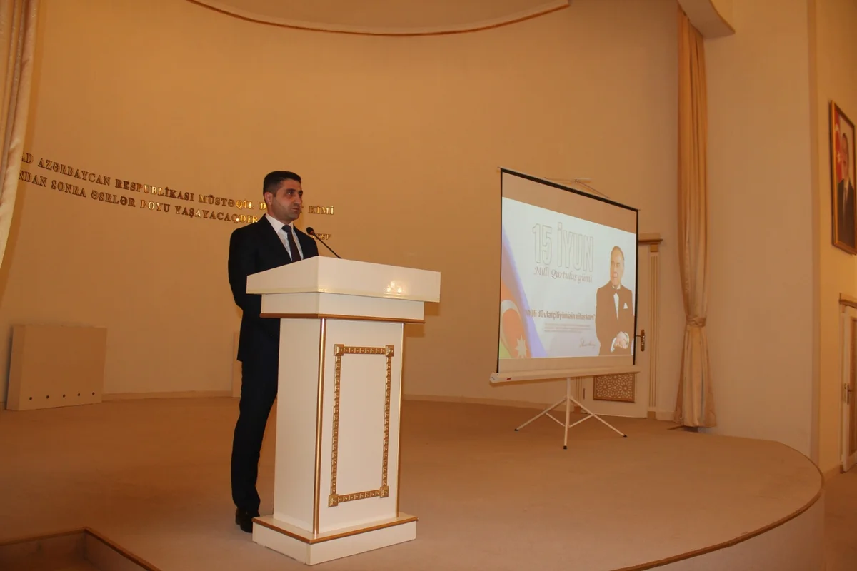 Çıxış edən Rayon İcra Hakimiyyətinin başçısı Elvin Paşayev Azərbaycan xalqının Ümummilli Lideri Heydər Əliyevin öz xalqını zamanın mürəkkəb tarixi-siyasi sınaqlarından uğurla çıxarmış və ardıcıl mübarizə apararaq onu müstəqilliyə qovuşdurmuş qüdrətli şəxsiyyət olduğunu diqqətə çatdırıb. Bildirilib ki, hər bir hadisəyə nəticəsinə görə qiymət verilir. Heydər Əliyevin 15 iyun 1993-cü ildə xalqın tələbi ilə hakimiyyətə qayıtması böyük hadisə olmaqla Azərbaycan üçün ümummilli baxımdan ciddi nəticələr verdi. Bütün şüurlu həyatını canından artıq sevdiyi xalqına, Vətəninə həsr etmiş müdrik dövlət xadimi Ulu Öndər Heydər Əliyevin adı tariximizə həm də müstəqilliyimizin memarı, yeni Azərbaycanın banisi kimi yazılıb. Çoxşaxəli və zəngin fəaliyyəti, misilsiz insani keyfiyyətləri sayəsində Ulu Öndər zəmanəmizin əbədiyaşar dahisinə çevrilib.