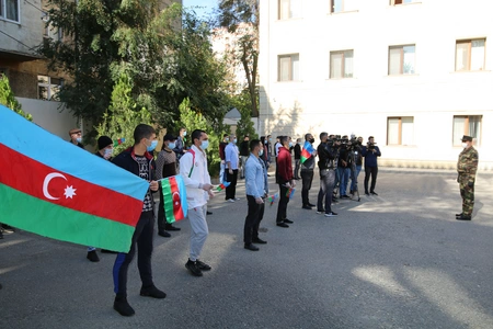 Gənclər müzəffər Ordumuzun sıralarında xidmətə yola düşmələrindən şərəf duyduqlarını, hərbi xidmət dövründə nizam-intizamlı və ayıq-sayıq olacaqlarını, hərbi texnikanın sirlərinə mükəmməl yiyələnəcəklərini, Azərbaycan əsgəri adını uca tutacaqlarını qürurla ifadə edirlər.