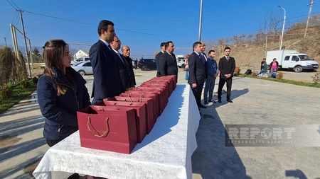 Xocalı rayonuna yola salınan növbəti köç karvanı Şuşakənd kəndinə çatıb, sakinlərə mənzillərin açarları təqdim olunub.