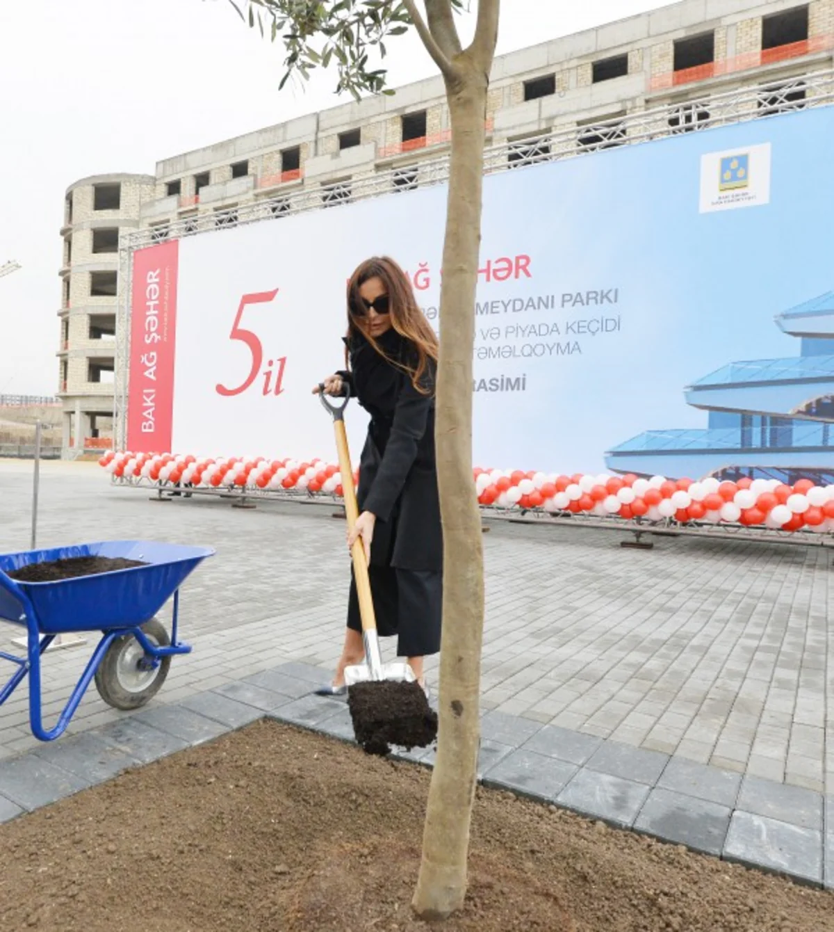 Daha sonra Prezident İlham Əliyev və xanımı Mehriban Əliyeva burada ağac əkiblər.