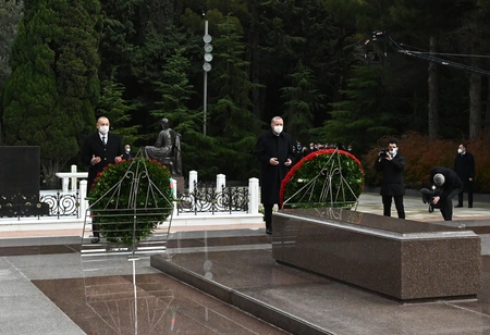 "Report" xəbər verir ki, dövlət başçıları Ulu Öndərin məzarı önünə əklillər qoyublar.