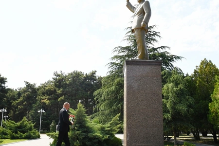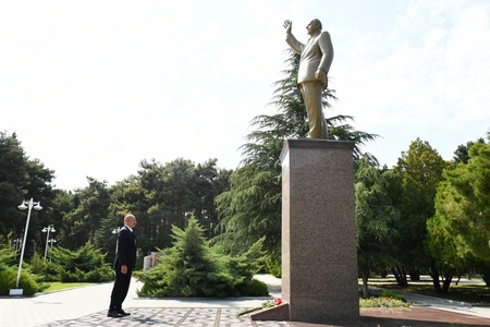 "Report" xəbər verir ki, dövlətimizin başçısı xalqımızın ulu öndəri Heydər Əliyevin şəhərin mərkəzində ucaldılmış abidəsini ziyarət edərək önünə gül dəstəsi qoyub.
