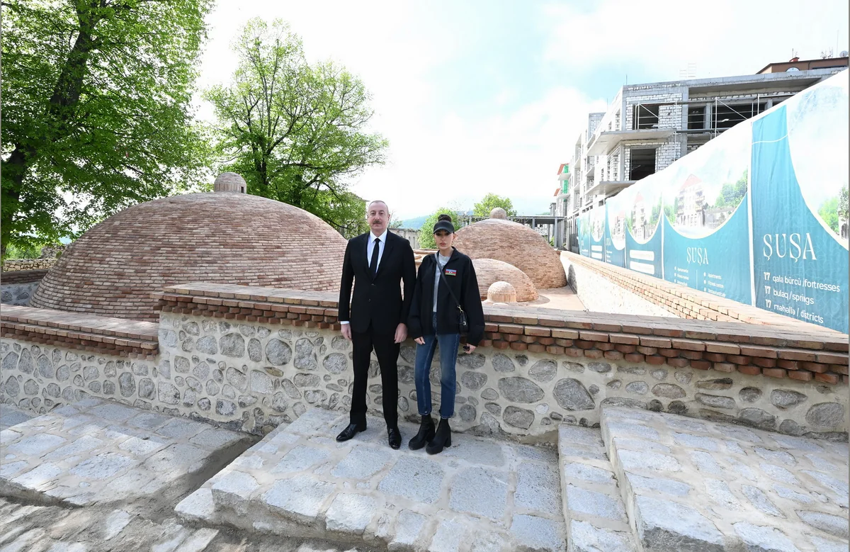 Azərbaycan Respublikasının Prezidenti İlham Əliyev və birinci xanım Mehriban Əliyeva Şuşada “Şirin su” hamamının bərpadan sonra açılışında iştirak ediblər.