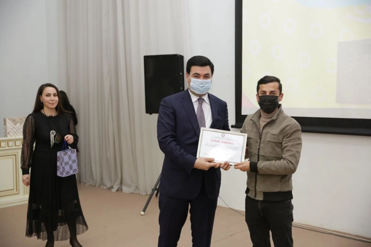 Rəsmi hissədə Xaçmaz rayonunun ictimai-siyasi həyatında, təhsil, səhiyyə, mədəniyyət və idman sahələrində fərqlənən bir qrup gənc rayon icra hakimiyyəti tərəfindən fəxri fərman eləcədə qiymətli xatirə hədiyyələri ilə mükafatlandırılıb.
