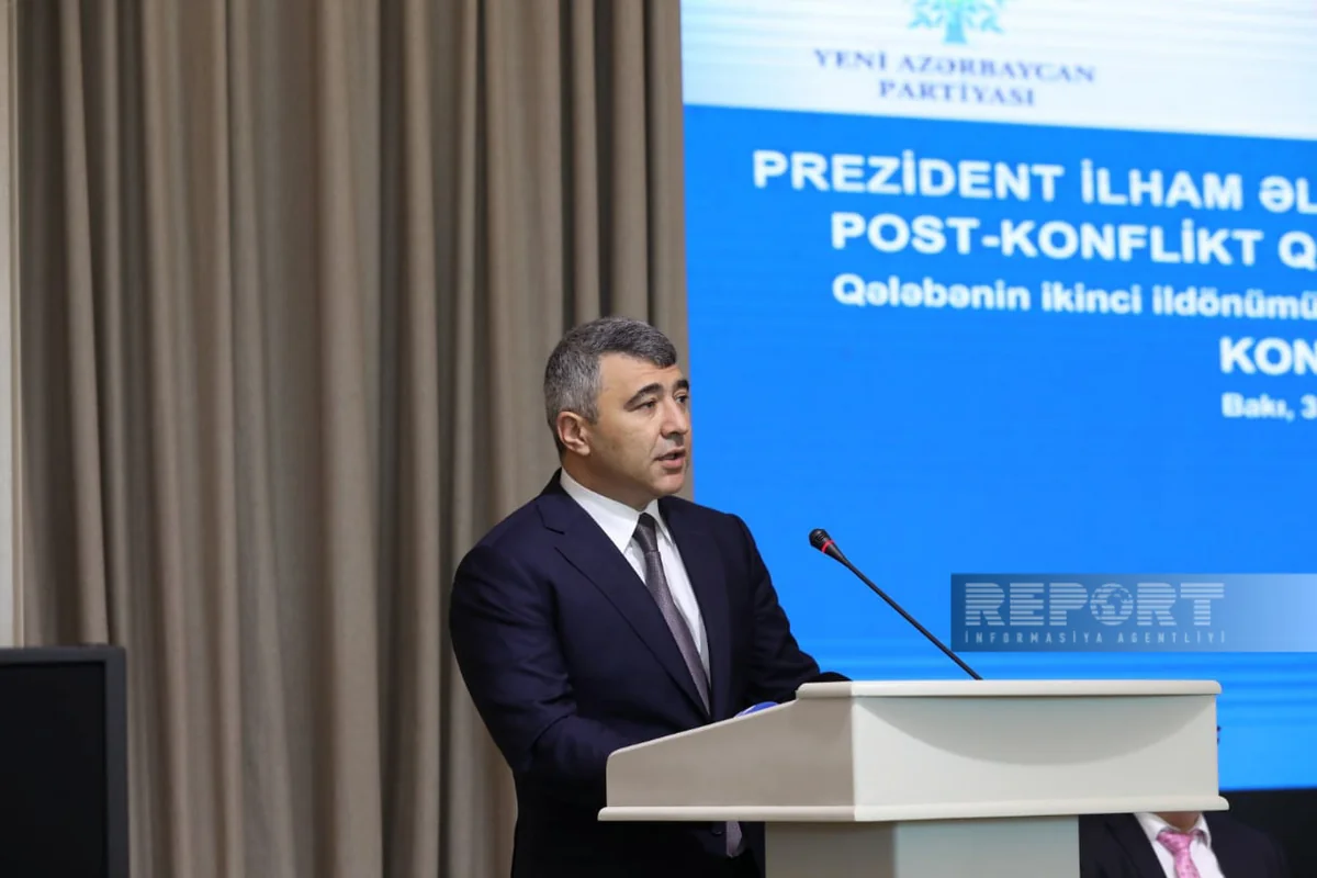 Bu gün Yeni Azərbaycan Partiyası (YAP) və İqtisadi İslahatların Təhlili və Kommunikasiya Mərkəzinin təşkilatçılığı ilə “Müzəffər Ali Baş Komandan İlham Əliyevin rəhbərliyi ilə postkonflikt quruculuğu modeli” mövzusunda qələbənin ikinci ildönümü - Zəfər Gününə həsr olunmuş konfrans keçirilib.