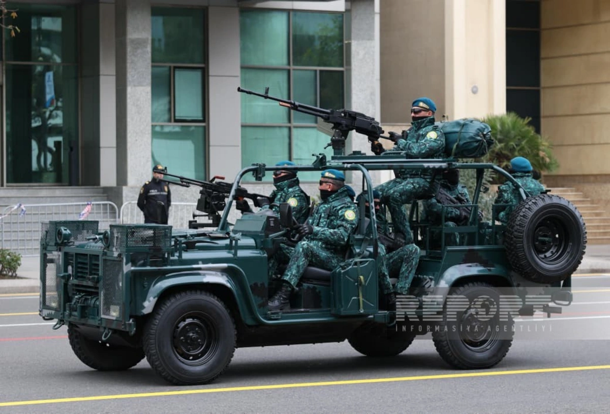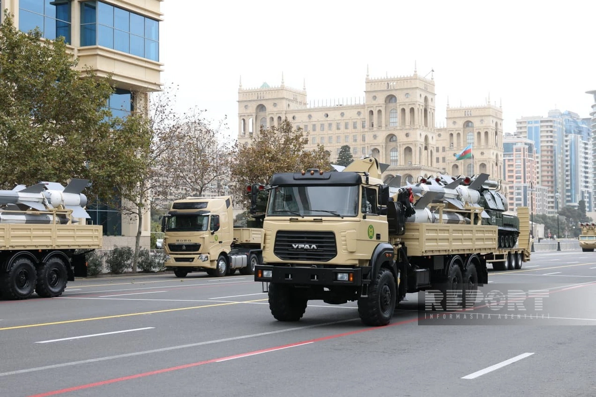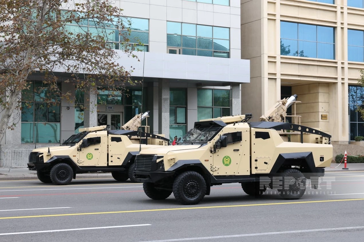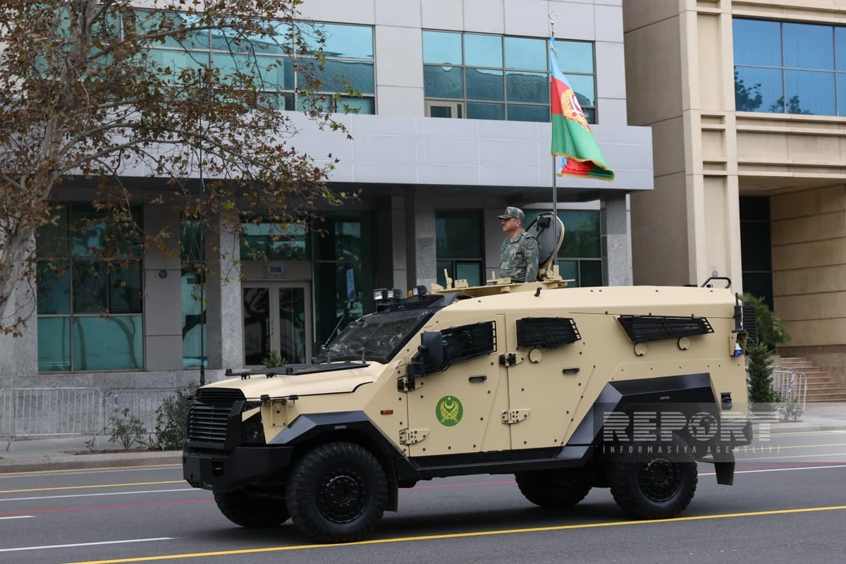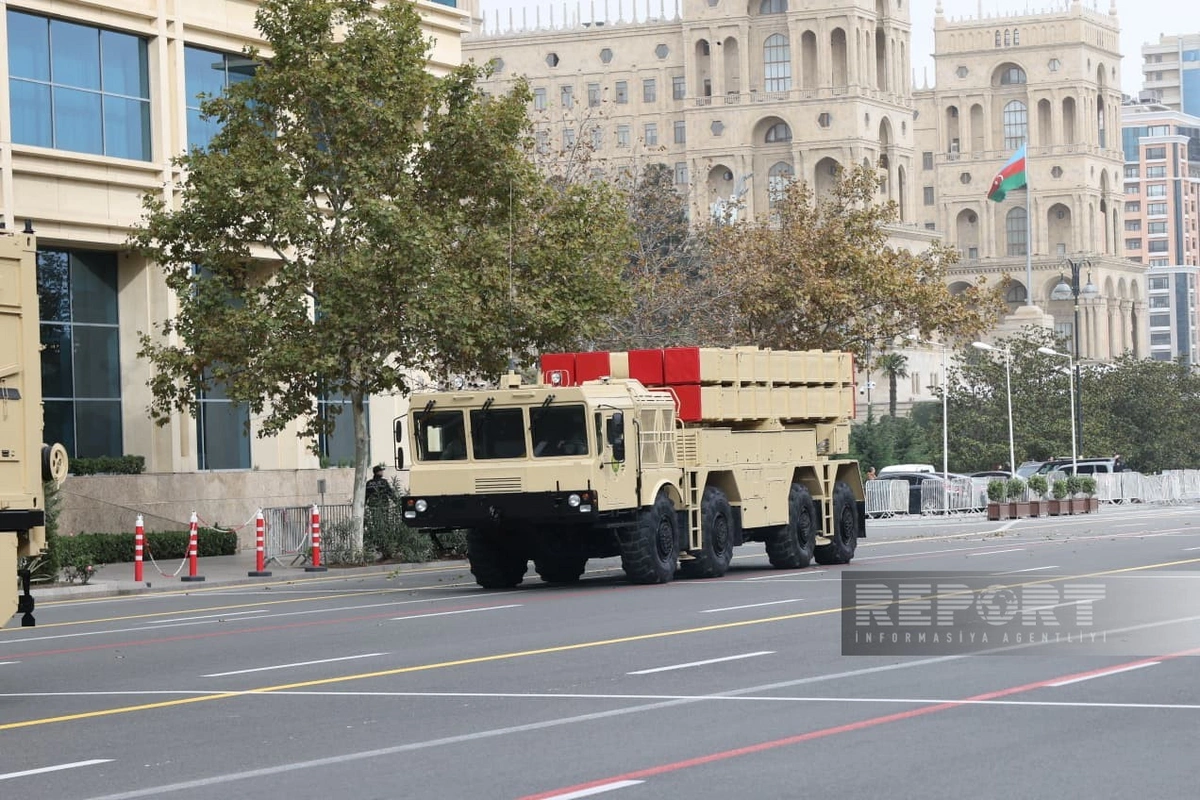 "Report" xəbər verir ki, paradda nümayiş etdiriləcək hərbi texnika, pilotsuz uçuş aparatları və ordunun paradda iştirak etmək üçün seçilmiş şəxsi heyəti meydandan keçid edib.