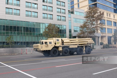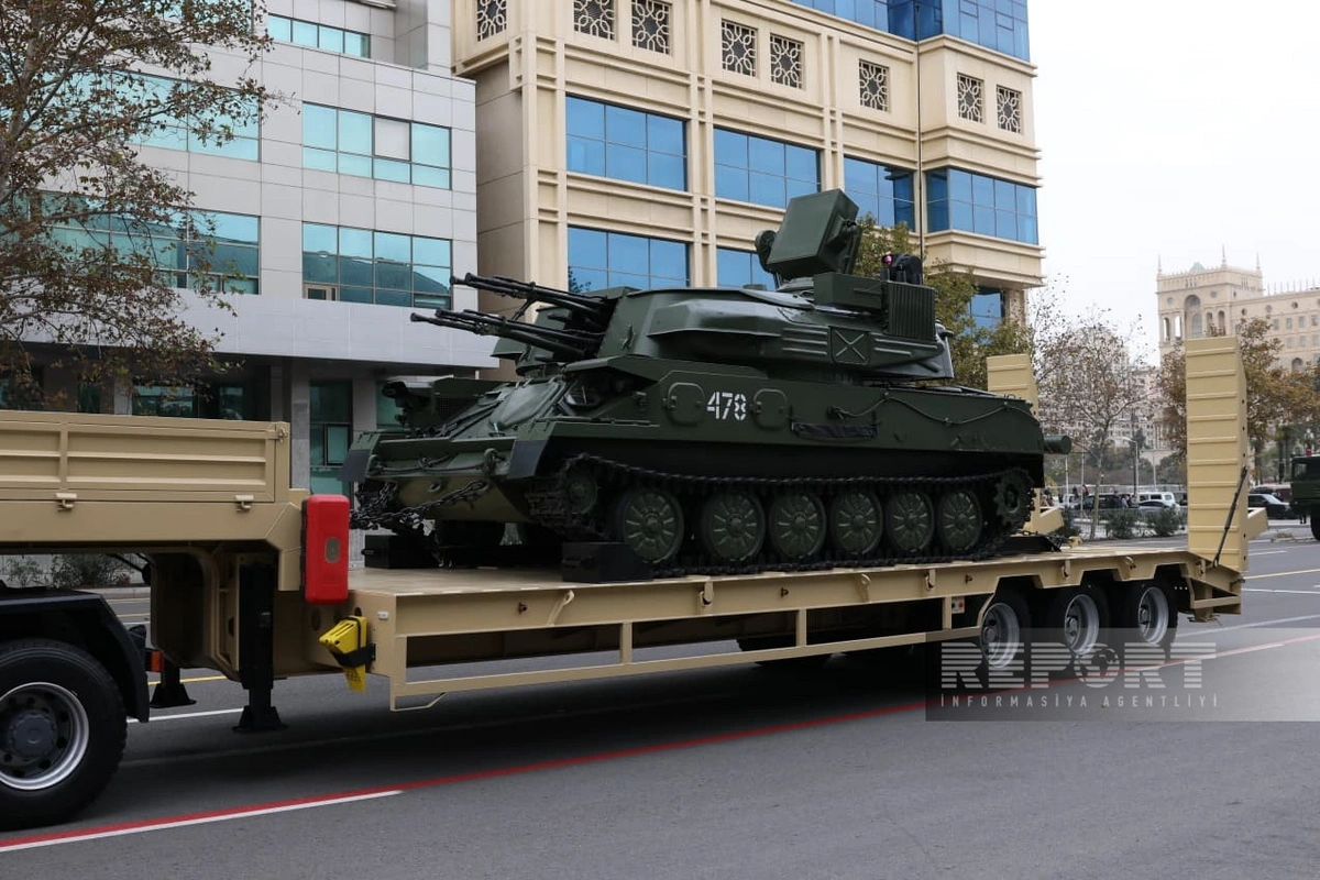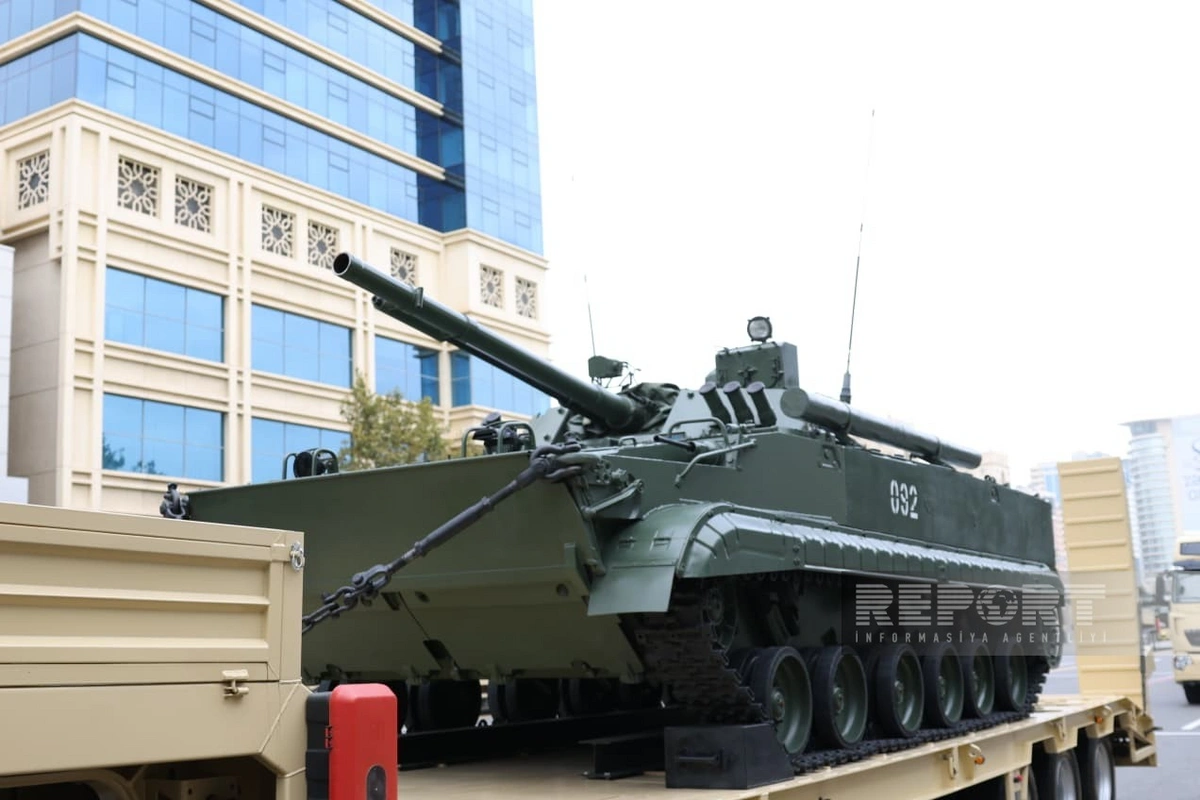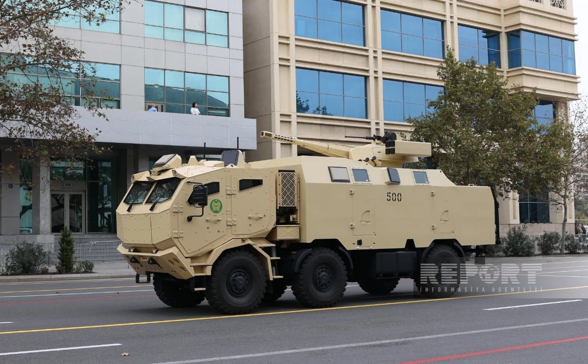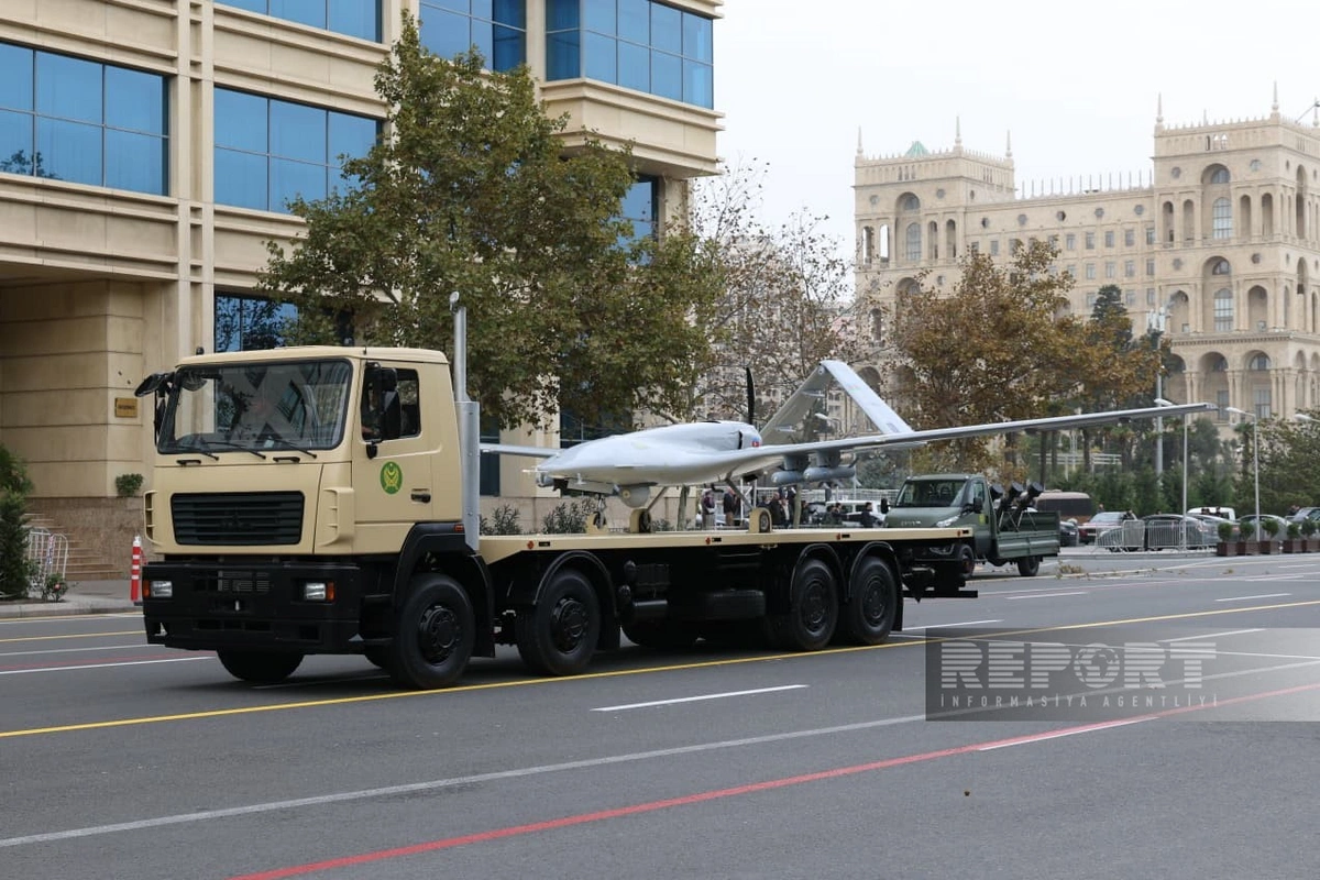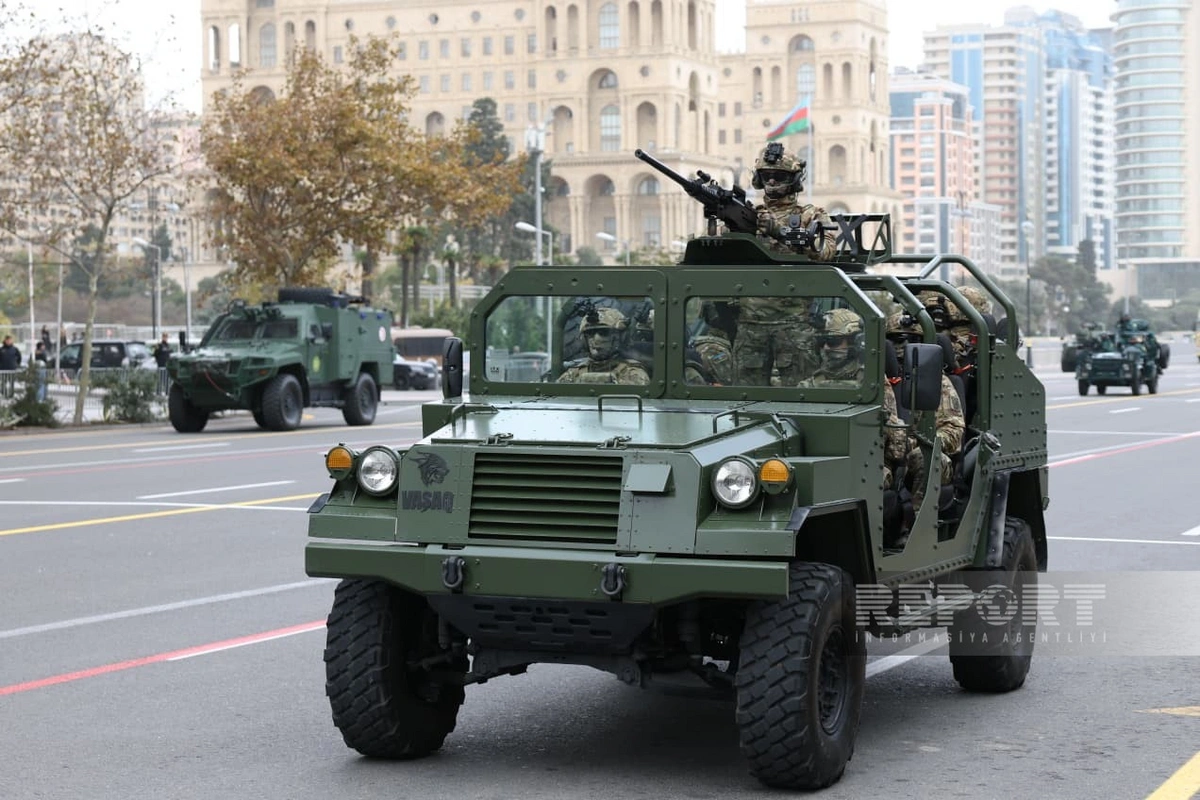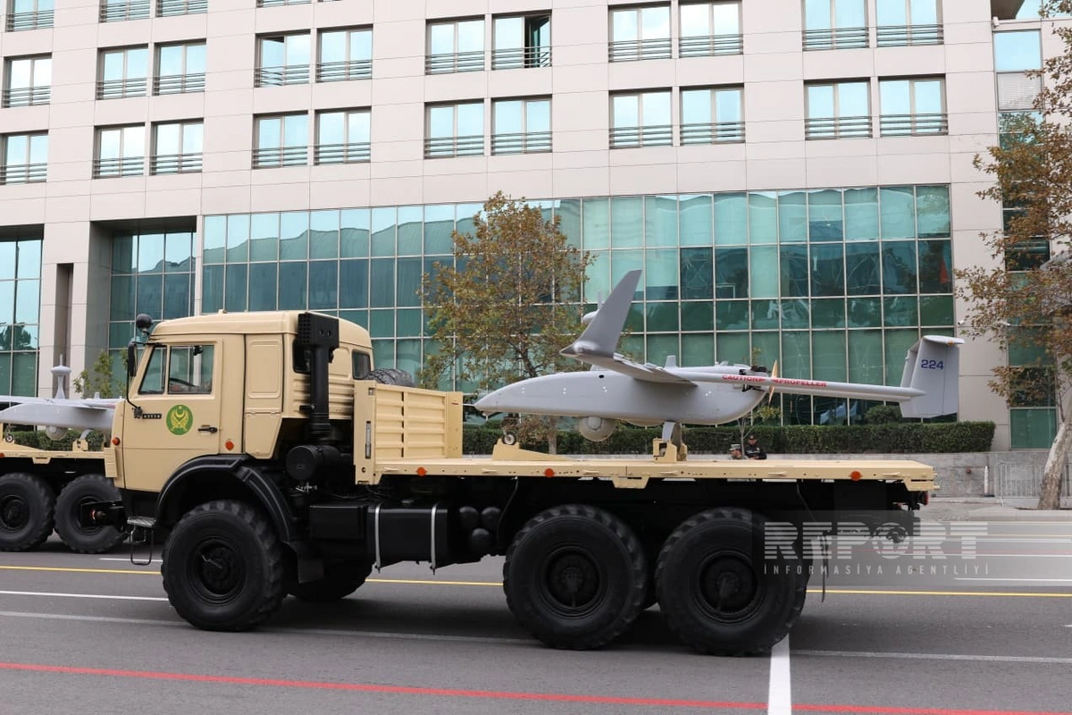 "Report" xəbər verir ki, paradda nümayiş etdiriləcək hərbi texnika, pilotsuz uçuş aparatları və ordunun paradda iştirak etmək üçün seçilmiş şəxsi heyəti meydandan keçid edib.