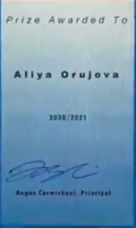 Şotlandiyanın Aberden şəhərində yaşayan gənc soydaşımız Aliyə Orucova Aberden Beynəlxalq Məktəbinin "Academic Excellence" mükafatına layiq görülüb.