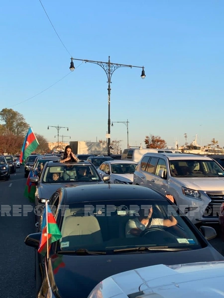 “Report”un yerli bürosu xəbər ki, yüzlərlə həmvətənimiz Azərbaycan və Türkiyənin bayraqları ilə bəzədilmiş avtomobillərlə Bruklindən yola düşüblər. Azərbaycan musiqiləri ilə hərəkət edən avtomobillər çevrədəkilərin diqqətini cəlb edib. Yerli vətəndaşlar həmvətənlərimizi təbrik edib, onları alqışlayıblar. ABŞ polisi yürüş ərzində avtomobil karvanını müşayiət edib. Yürüşün sonunda həmvətənlərimiz “Old Baku” (Köhnə Bakı) restoranında toplaşıblar.