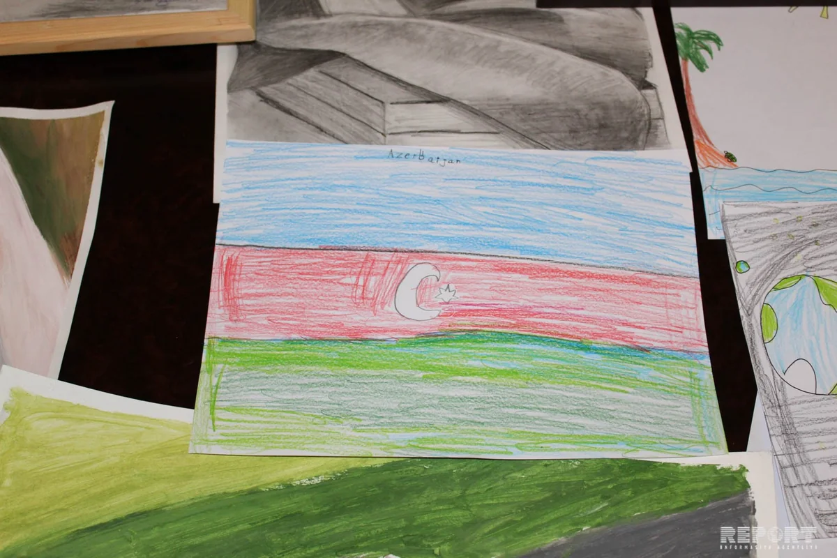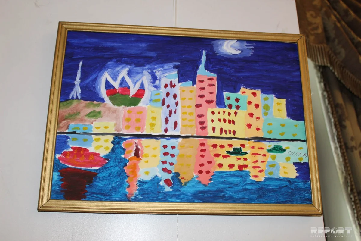 Sərgidə uşaqların Azərbaycan mövzusunda rəsmləri də nümayiş etdirilib.