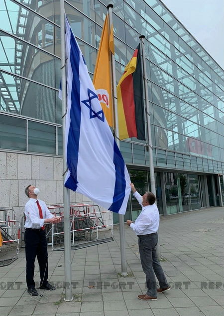 Kansler Angela Merkelin partiyası Xristian Demokrat İttifaqının (CDU) mərkəzi ofisinin qarşısında isə, İsrail bayrağı asılıb. CDU-nun baş katibi Paul Çimiak partiyasının İsrail ilə həmrəylik əlaməti olaraq İsrail bayrağını asdığını söyləyib.