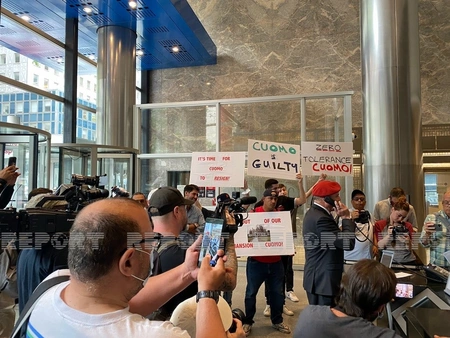 Qubernatorun Nyu-York şəhərində yerləşən ofisinin önündən başlayaraq, şəhərin mərkəzi meydan və küçələrində E.Kuomonun istefasını tələb edən qruplar etiraz aksiyaları keçirirlər. Nyu-York şəhərinin bir çox mərkəzi yol qovşaqlarında yerləşdirilən nəhəng lövhələrdə valinin şəkilinin önünə “İstefa” sözü yazılıb.