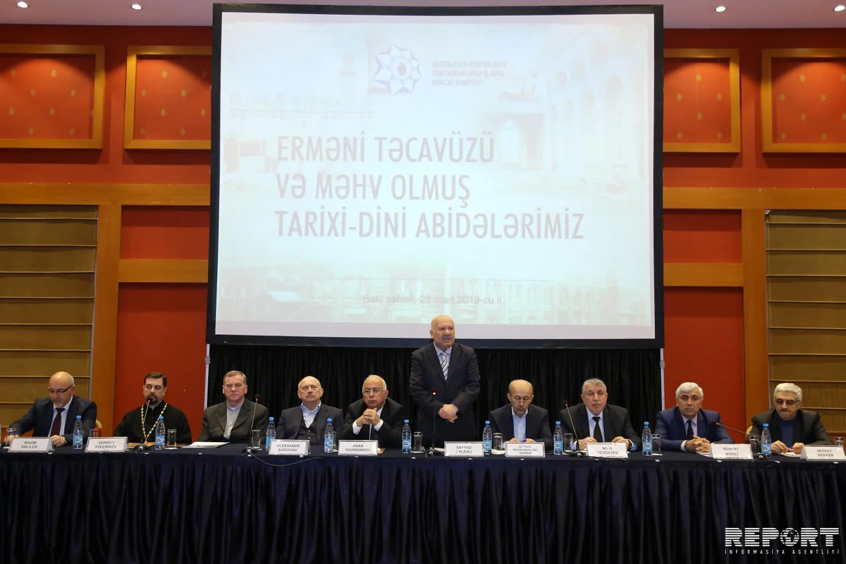 Konfransda ermənilərin işğal olunmuş Azərbaycan torpaqlarında tarixi-dini abidələrimizə qarşı saxtakarlıq və cinayət əməlləri, ölkəmizin mədəni irsinə qarşı təcavüz faktları, o cümlədən dini-mədəni ibadətgahların mahiyyətinin dəyişdirilməsi barədə müzakirələr aparılıb.