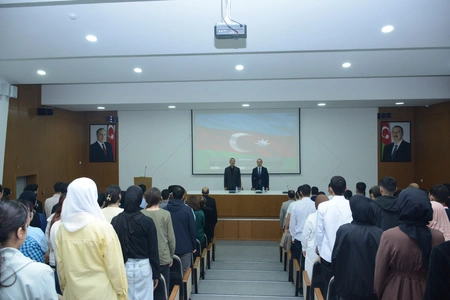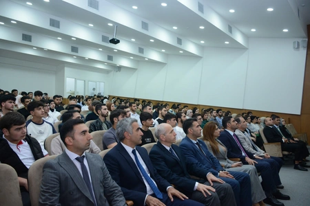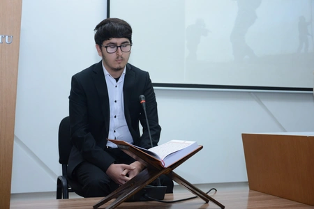 Daha sonra İlahiyyat fakültəsinin II kurs tələbəsi Cəlal Cəfərli tərəfindən şəhidlərin ruhuna Quran tilavəti təqdim edilib.