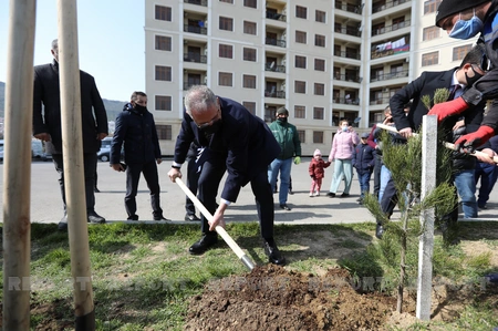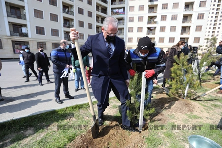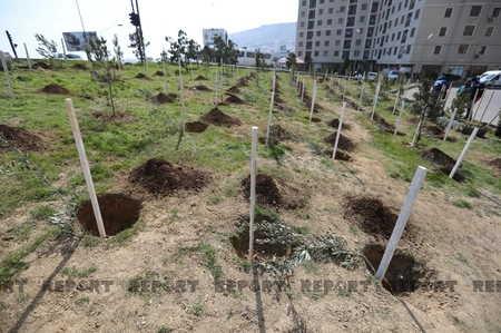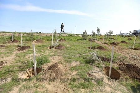 "Report" xəbər verir ki, Ekologiya və Təbii Sərvətlər Nazirliyinin, Medianın İnkişafı Agentliyinin və KİV nümayəndələrinin iştirakı ilə keçirilən ağacəkmə aksiyasında nazirliyin tinglik sahələrində yetişdirilən 400-ə yaxın meyvə və həmişəyaşıl ağac tingləri əkilib.