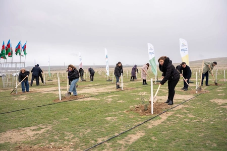 Tədbir çərçivəsində Abşeron yarımadasının torpaq-iqlim şəraitinə uyğun Eldar şamı və zeytun ağacları əkilib.