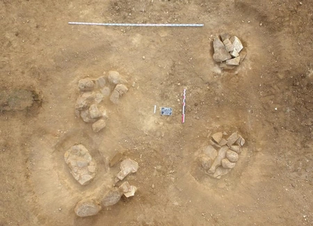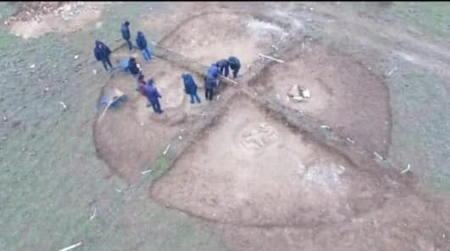 Arxeoloji tədqiqat və xilasetmə işləri zamanı inşa edilən yolun üzərində və ona bitişik ərazidə 5 daş örtüklü kurqan aşkarlanıb.