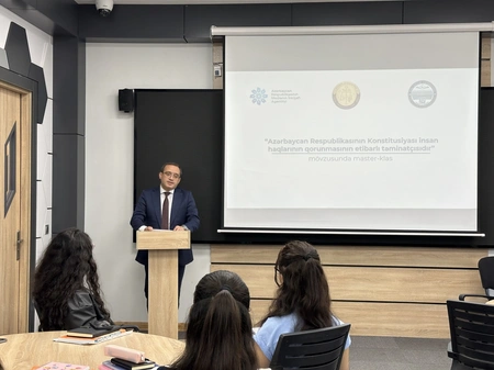 "Konstitusiya və Suverenlik İli" çərçivəsində jurnalistika fakültəsinin tələbələri üçün "Azərbaycan Respublikasının Konstitusiyası insan haqlarının qorunmasının etibarlı təminatçısıdır" mövzusunda master-klas təşkil olunub.