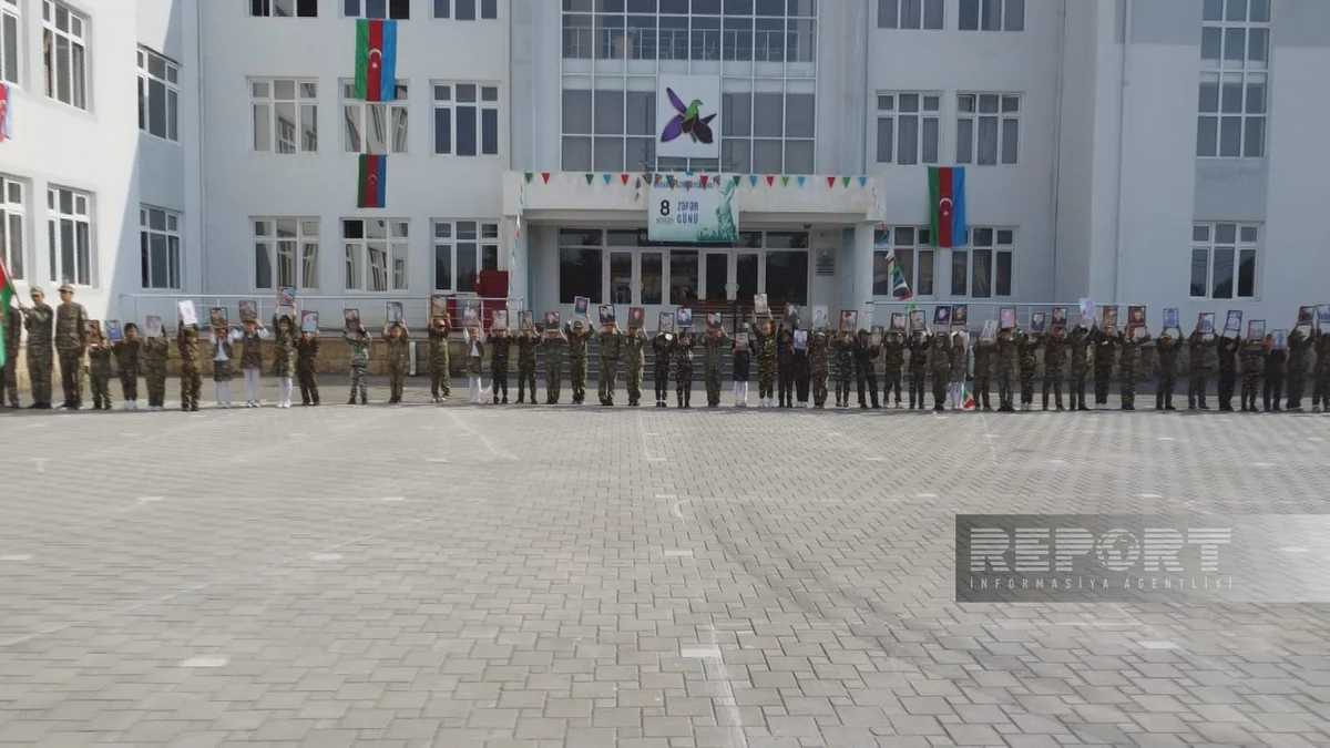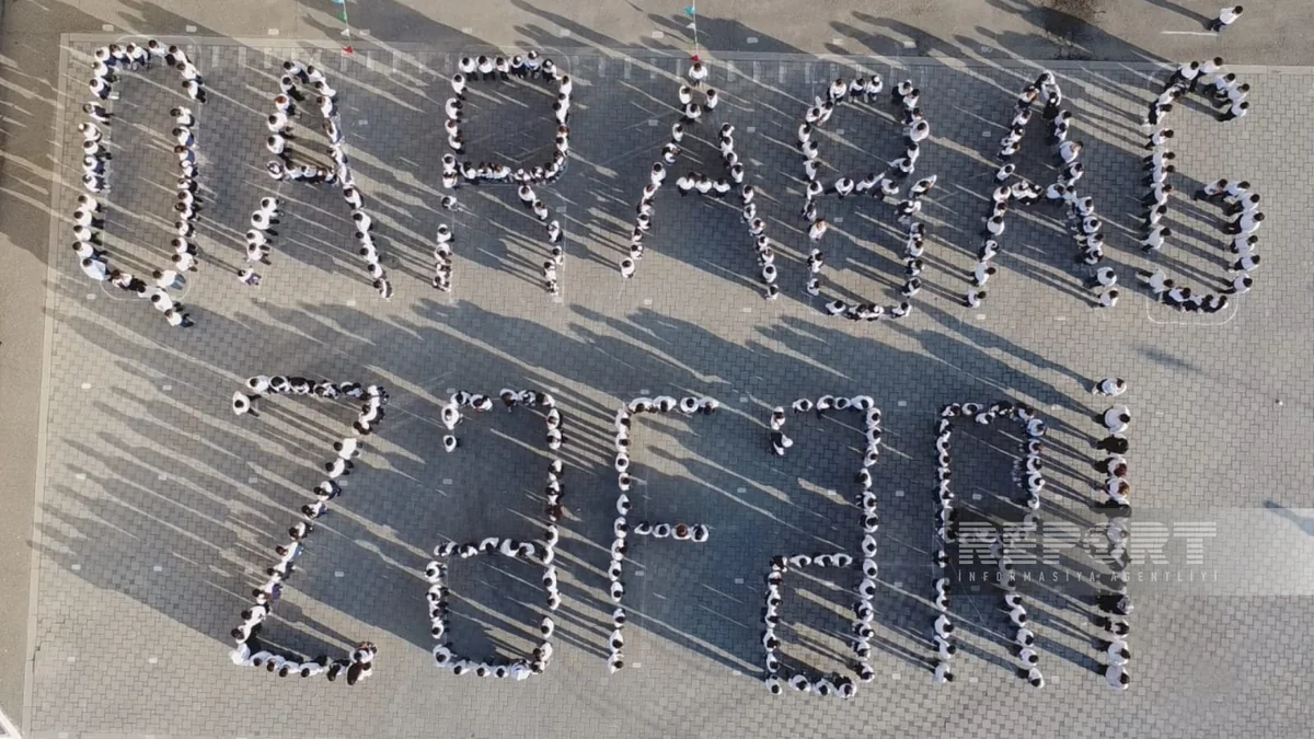 Kürdəmirdə 8 noyabr - Zəfər Günü münasibətilə rayon məktəbliləri maraqlı fləş-mob təşkil ediblər.