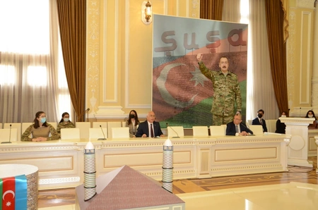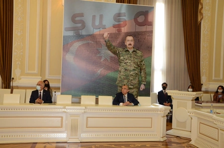 Bakı Şəhər İcra Hakimiyyətinin iclas zalında şagirdlərin özlərinin aparıcılığı ilə təşkil edilən təqdimat mərasimində çıxış edən Bakı Şəhər İcra Hakimiyyətinin başçısı Eldar Əzizov bildirib ki, illər boyu erməni millətçiləri Azərbaycan torpaqlarına göz dikiblər. Bu illər ərzində xalqımıza, müsəlmanlara qarşı sözün əsl mənasında soyqırımı siyasəti yeridilib. Nəhayət ki, son 200 il ərzində ilk dəfə olaraq düşmənə öz yeri göstərildi, o kapitulyasiya aktını imzaladı.