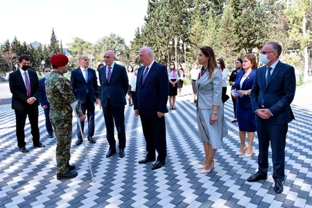 Əvvəlcə qonaqlar ulu öndər Heydər Əliyevin abidəsini ziyarət edib, daha sonra Heydər Əliyev Mərkəzi ilə tanış olublar.
