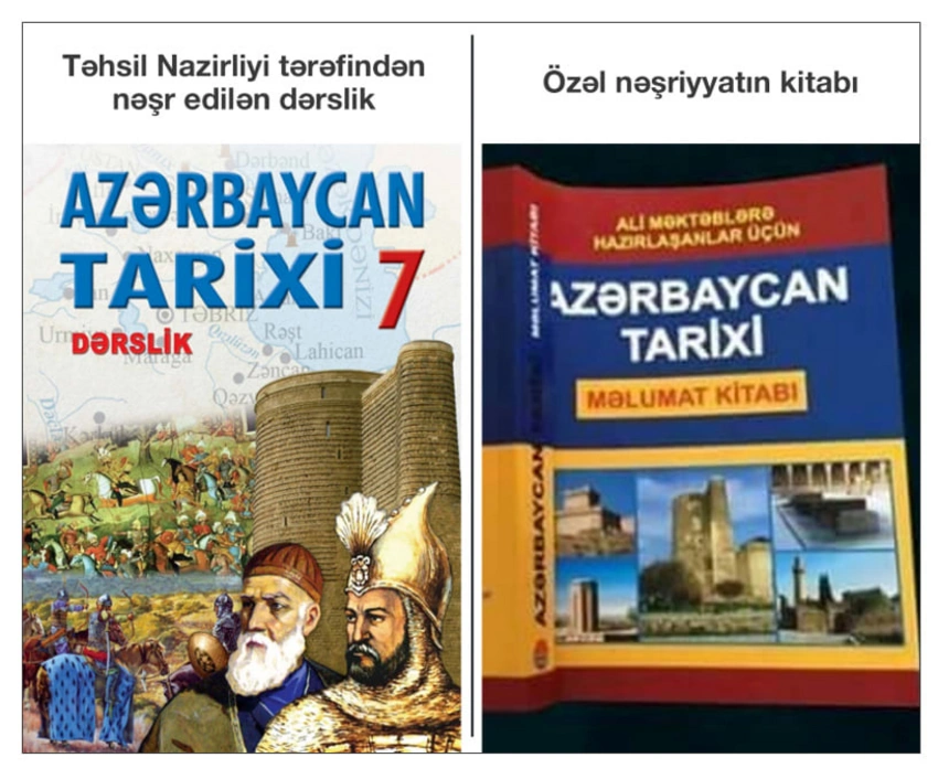 "Acınacaqlısı budur ki, bir çox sosial şəbəkə yazarları özəl nəşriyyat tərəfindən çap olunan tarixi məlumat kitabçası ilə Təhsil Nazirliyinin nəşr etdirdiyi 7-ci sinif “Azərbaycan tarixi” dərsliyini qarışdıraraq mətləbdən tamamilə uzaq düşmüş və məsələnin nə yerdə olduğundan xəbərsiz olaraq sosial şəbəkə istifadəçilərinə yanlış məlumat vermişlər. Əslində isə 7-ci sinif “Azərbaycan tarixi” dərsliyində yer alan tarixi məlumatlar tarixçi alimlər tərəfindən səhih tarixi mənbələrə istinad edilərək təsbit olunub. Digər “dərslik” kimi təqdim olunan kitab isə nəinki dərslik deyil, hansısa özəl nəşriyyat tərəfindən ali məktəblərə hazırlaşanlar üçün çap edilmiş soraqçadır və Təhsil Nazirliyinə heç bir aidiyyəti yoxdur. Bu, aşağıda göstərilən foto nümunədə də öz əksini tapır. Hələ 2015-ci ildə Təhsil Nazirliyi bununla bağlı rəsmi olaraq öz mövqeyini bildirib. Buna baxmayaraq, həmin məsələ yenidən gündəmə gələrək insanlarda çaşqınlıq yaradıb. Bir daha tarixçilərin dəqiq mənbələrinə istinadən deyə bilərik ki, tarix dünənin mirası olmaqla, həm bu günün mirası, sabahın aynasıdır. Biz hamımız tarixi gerçəkliyi dəqiq mənbələrə istinadən verməklə, həm də öz missiyamızı yerinə yetiririk", - məlumatda qeyd olunub.