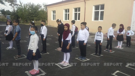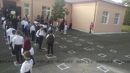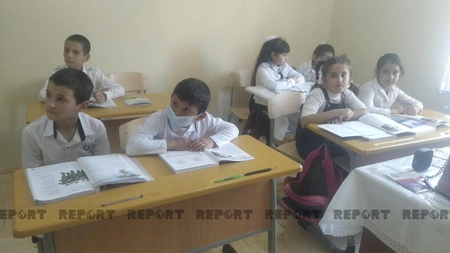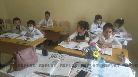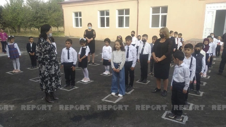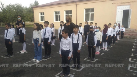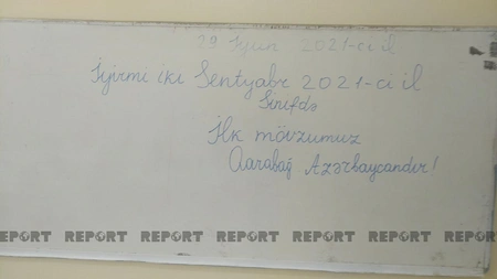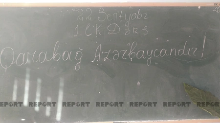 "Report"un Qarabağ bürosunun məlumatına görə, məktəbin şagirdləri və pedaqoji kollektivi "Məktəb hədəf deyil" şüarı ilə ilk dərs gününə başlayıblar.