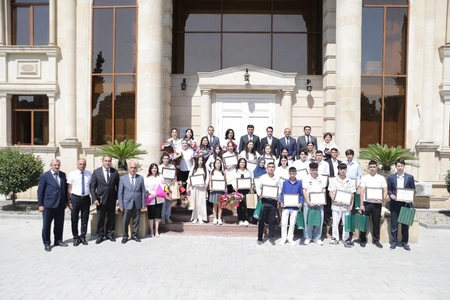 Sonda tələbə adını qazanan şəhid övladları və 600 baldan yuxarı nəticə göstərərək ali təhsil müəssisələrinə qəbul olan məzunlara fəxri fərman və qiymətli hədiyyələr təqdim olunub, xatirə şəkli çəkdirilib.