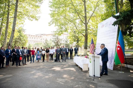 Then, an event dedicated to signing a Memorandum of Cooperation was held in the Student Park of the university. Welcoming the guests, ASAU Rector, Professor Ibrahim Jafarov said that his university has been cooperating closely with Oklahoma State University for a long time. The two universities signed MoU in 2019 and a strategic partnership agreement in 2020. The memorandum inked today will allow university masters to receive diplomas from both universities by studying at ASAU in the first year and at Oklahoma State University in the second year.