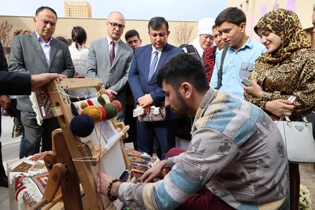 In the Azerbaijani section of the exhibition, the cultural center showcased carpet samples from Nakhchivan, Ganja, Quba, Yerevan, Tabriz, Borchali, Derbent, and other regions, along with albums dedicated to the country's carpet art. Aghasadig Suleymanov also demonstrated carpet weaving on his small loom.