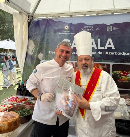 Renowned French chefs visited the Azerbaijani pavilion, organized at the International Gastronomy Days in Paris near the Eiffel Tower by the Embassy of Azerbaijan in France in partnership with the "Friends of Azerbaijan" Association. Among the guests were distinguished chefs Cyril Roquet-Provo and Christophe Geoffroy, president of the "World Chefs" school, along with Ambassador Leyla Abdullayeva, Azerbaijani diplomats, local entrepreneurs, festival participants, and other visitors.