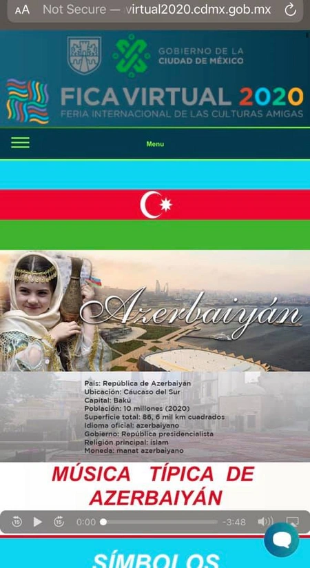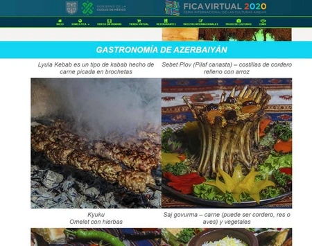 Performed annually in May, the event is held in a virtual format in December connected with the COVID-19 pandemic this year. For this purpose, about 60 countries, including Azerbaijan, are represented on the website www.ficavirtual2020.cdmx.gob.mx, specially created by the Government of the City of Mexico (page about Azerbaijan at the festival -http://www.ficavirtual2020.cdmx.gob.mx/AZERBAIYAN.html). The website will be operational for five months, starting from December, and will be updated regularly.