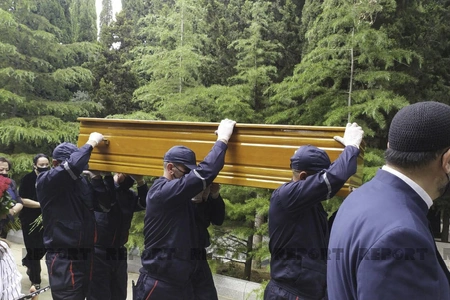 Report informs that family members, relatives of the deceased, Minister of Culture Anar Karimov, and public and political figures attend the funeral.