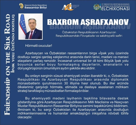 Within the framework of cooperation between the Union of Artists of the Nakhchivan Autonomous Republic, the Union of Artists of Azerbaijan, and the Embassy of the Republic of Uzbekistan in the Republic of Azerbaijan, an international online exhibition entitled "Friendship on the Silk Road" was held, Report informs.