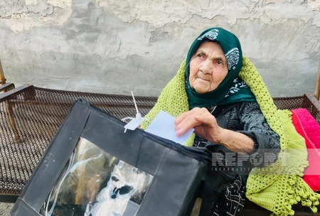 One of the oldest voters of Nakhchivan, Huseynaliyeva Sharaf Mukhtar, born in 1920, who lives in the Qivrag settlement of Kangarli district, exercised her right to vote, Report informs.