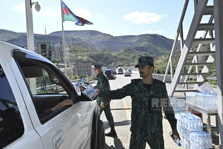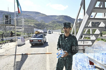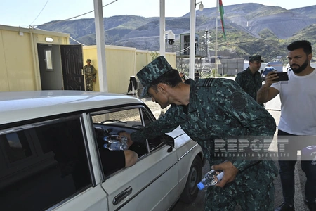 Azerbaijani border guards distributed water and sweets to Armenian residents of Karabakh at Lachin border crossing point, Report informs.