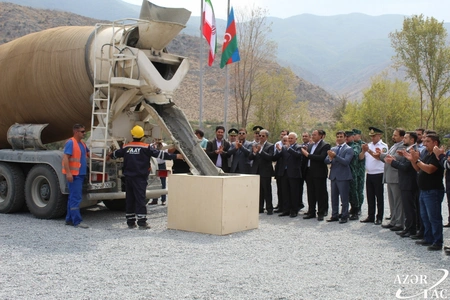 Foundation of Aghband highway bridge laid on Azerbaijan-Iran border