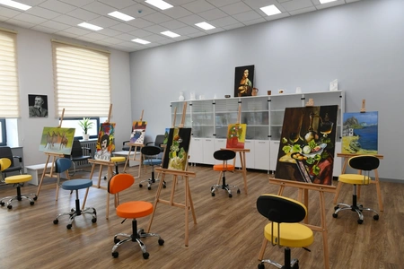 At present, 385 students study piano, violin, guitar, clarinet, saxophone, vocals, singer, tar, kamancha, accordion, drum, painting, choreography, theory, and teaching auxiliary subjects, and 78 teachers are engaged in their training. All classrooms of the school are provided with visual aids. The art school's two-story building has 15 individual classrooms, theory rooms, a library, a tailor's room, a conference hall, art rooms, a choreography room, a dining room, and a recording studio. The school has established a "Vagif Mustafazadeh corner".