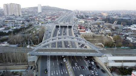 Under the project, a new railway bridge was built near the Khirdalan ring of the Baku-Guba-Russian Federation state border highway.