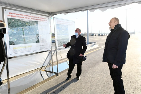 The head of state also attended the opening of the first 30km section of the new Baku-Guba-Russian Federation state border highway, which is part of the North-South international transport corridor and is located between Yashma and Gilazi settlements of Khizi district.