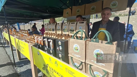 The event brings together 37 beekeepers from the Karabakh and East Zangazur economic regions, as well as other parts of the country, who showcase their branded honey products.
